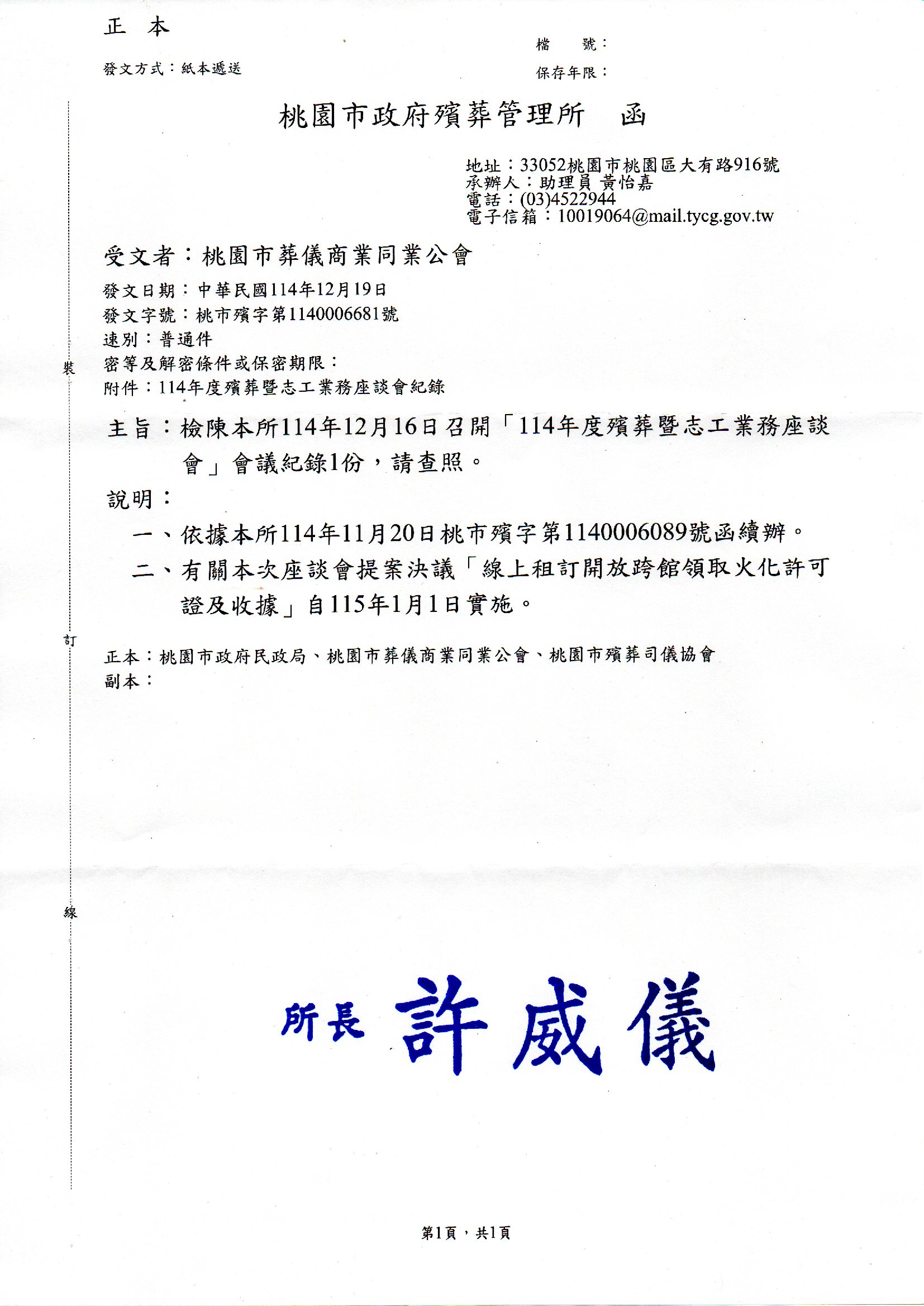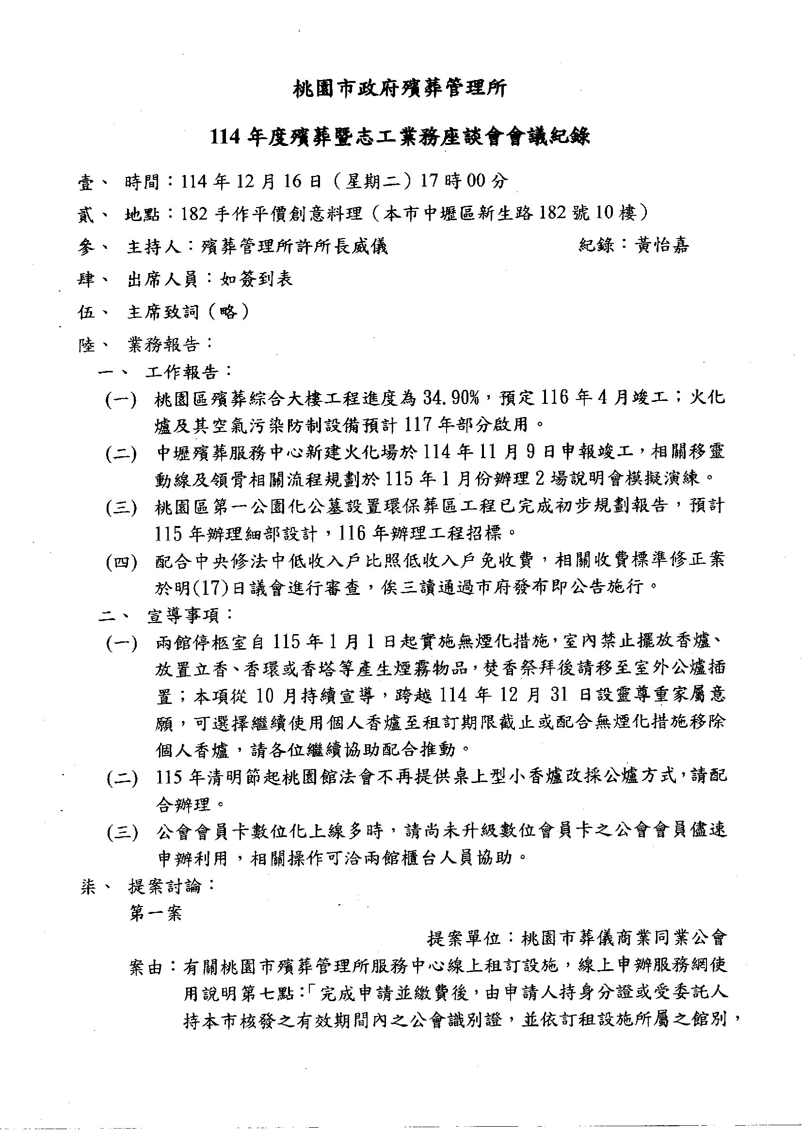 「114年度下半年殯葬暨志工業務座談會」會議紀錄1份。