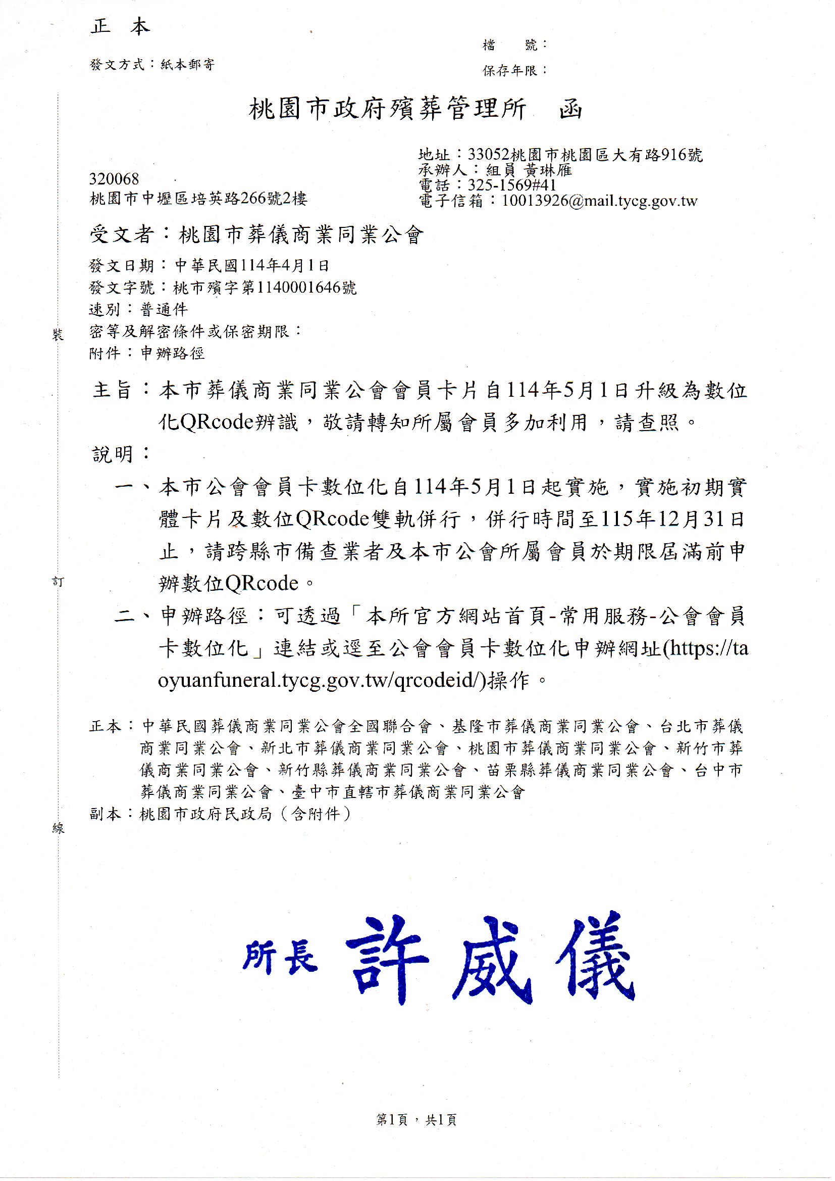 本會晶片會員卡自114年5月1日升級為數位化QRcode辨識,敬請會員多加利用。